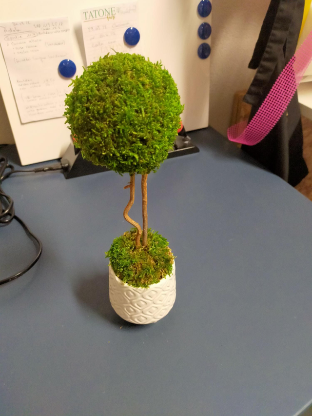 alberello in vaso di ceramica bianca, realizzato con muschio stabilizzato , non cambia colore non necessita di irrigazione,